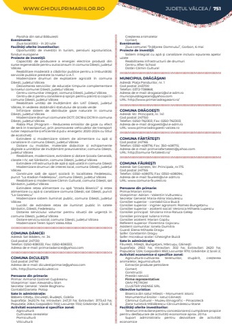 WWW.GHIDULPRIMARIILOR.RO JUDE%u021aUL V%u00c2LCEA / 751Parohia din satul B%u0103buie%u0219tiEvenimente:Ziua localit%u0103%u021bii - %u00een 20 iulieFacilit%u00e3%u0163i oferite investitorilor:Oportunit%u0103%u021bi de investi%u021bii %u00een turism, pensiuni agroturistice, fonduri europeneProiecte de investi%u0163ii:Capacit%u0103%u021bi de producere a energiei electrice produs%u0103 din surse regenerabile pentru autoconsum %u00een comuna D%u0103e%u0219ti, jude%u021bul V%u00e2lceaReabilitare moderat%u0103 a cl%u0103dirilor publice pentru a %u00eembun%u0103t%u0103%u021bi serviciile publice prestate la nivelul U.A.T.Modernizare drumuri de exploatare agricol%u0103 %u00een comuna D%u0103e%u0219ti, jude%u021bul V%u00e2lceaDezvoltarea serviciilor de educa%u021bie timpurie complementare la nivelul comunei D%u0103e%u0219ti, jude%u021bul V%u00e2lceaCentru comunitar integrat, comuna D%u0103e%u0219ti, jude%u021bul V%u00e2lceaCentru de zi pentru consiliere %u0219i sprijin pentru p%u0103rin%u021bi %u0219i copii %u00een comuna D%u0103e%u0219ti, jude%u021bul V%u00e2lceaReabilitare unit%u0103%u0219i de %u00eenv%u0103%u021b%u0103m%u00e2nt din UAT D%u0103e%u0219ti, jude%u021bul V%u00e2lcea, %u00een vederea dob%u00e2ndirii statutului de %u0219coala verde%u00cenfiin%u021bare sistem de distribu%u021bie gaze naturale %u00een comuna D%u0103e%u0219ti, jude%u021bul V%u00e2lceaModernizare drumuri comunale DC17, DC18 %u0219i DC19 %u00een comuna D%u0103e%u0219ti, jude%u021bul V%u00e2lceaRabla Plus (Program %u2013 Reducerea emisiilor de gaze cu efect de ser%u0103 %u00een trasnporturi, prin promovarea vehiculelor de transport rutier nepoluante %u0219i eficiente d.p.d.v. energetic 2020-2024 cu titlul de ecotichet)Extindere %u0219i modernizare sistem de alimentare cu ap%u0103 %u0219i canalizare %u00een comuna D%u0103e%u0219ti, jude%u021bul V%u00e2lceaDotare cu mobilier, materiale didactice %u0219i echipamente digitale a unit%u0103%u021bilor de %u00eenv%u0103%u021b%u0103m%u00e2nt preuniversitar, comuna D%u0103e%u0219ti, jude%u021bul V%u00e2lceaReabilitare, modernizare, extindere %u0219i dotare %u0218coala General%u0103, clasele I-IV, sat S%u00e2nbotin, comuna D%u0103e%u0219ti, jude%u021bul V%u00e2lceaExtindere infrastructur%u0103 de ap%u0103 %u0219i ap%u0103 uzat%u0103 %u00een comuna D%u0103e%u0219tiModernizare drumuri de interes local, comuna D%u0103e%u0219ti, jude%u021bul V%u00e2lceaConstruire sal%u0103 de sport %u0219colar%u0103 %u00een localitatea Fedele%u0219oiu, punct %u201cLa stadion Fedele%u0219oiu%u201d, comuna D%u0103e%u0219ti, jude%u021bul V%u00e2lceaReabilitare %u0219i modernizare C%u0103min Cultural, comuna D%u0103e%u0219ti, sat S%u00e2nbotin, jude%u021bul V%u00e2lceaExtindere re%u021bea alimentare cu ap%u0103 %u201cstrada Bisericii%u201d %u0219i re%u021bea alimentare cu ap%u0103 %u0219i canalizare comuna D%u0103e%u0219ti, sat D%u0103e%u0219ti, punct %u201cLa Go%u0219nescu%u201dModernizare sistem iluminat public, comuna D%u0103e%u0219ti, jude%u021bul V%u00e2lceaLucr%u0103ri de extindere re%u021bea de iluminat public %u00een satele S%u00e2nbotin, D%u0103e%u0219ti, Fedele%u0219oiuDotarea serviciului voluntar pentru situa%u021bii de urgen%u021b%u0103%u00a0 %u00een comuna D%u0103e%u0219ti, jude%u021bul V%u00e2lceaDotare serviciu social, comuna D%u0103e%u0219ti, jude%u021bul V%u00e2lceaModernizare Teren Sport Valea AlbaCOMUNA D%u0102NICEIAdres%u0103: Sat B%u0103deni, nr. 34Cod po%u0219tal: 247130Telefon: 0250-838333; Fax: 0250-838333; Adresa de e-mail: primariadanicei@yahoo.comCOMUNA DICULE%u015eTICod po%u0219tal: 247161Adresa de e-mail: diculestiprimarie@yahoo.comURL: http://comunadiculesti.roPersoane din primarie:Primar: Armand Costinel Cup%u0103reanu%u00a0Viceprimar:%u00a0Ioan Alexandru Stan%u00a0Secretar General : Vasile Boghianu%u00a0Contabil:Daniela%u00a0 Potop%u00a0Sate %u00een administra%u021bie:B%u0103beni-Olte%u0163u, Dicule%u015fti, Bude%u015fti, ColeliaSuprafa%u021ba:%u00a0 3420,74 ha; Intravilan:%u00a0 247,31 ha; Extravilan:%u00a0 3173,43 ha; Popula%u021bia:%u00a02064; Gospod%u0103rii:%u00a01102; Locuin%u021be:%u00a01102; Gr%u0103dini%u021be:%u00a02; %u0218coli:%u00a03; Activitati economice si specifice zonei:Agricultur%u0103Cultivarea cerealelorPomicultur%u0103Viticultur%u0103Cre%u015fterea animalelorComer%u0163Evenimente:Ziua comunei %u201c%u00cen%u0103l%u0163area Domnului%u201d, Gorbon, 6 maiProiecte de investi%u0163ii:Sistem integrat cu ap%u0103 %u015fi canalizare inclusiv epurarea apelor uzateReabilitarea infrastructurii de drumuriCentru After SchoolDot%u0103ri C%u0103min CulturalMUNICIPIUL DR%u0102G%u0102%u015eANIAdres%u0103: Pia%u0163a Pandurilor, nr. 1Cod po%u0219tal: 245700Telefon: 0372-738868; Adresa de e-mail: dragasani@vl.e-adm.romunicipiuldragasani@yahoo.comURL: http://www.primariadragasani.ro/COMUNA DR%u0102GOE%u015eTIAdres%u0103: Str. Principal%u0103, nr. 141Cod po%u0219tal: 247150Telefon: 0250-762303; Fax: 0250-762303; Adresa de e-mail: dragoesti@vl.e-adm.roURL: www.primariadragoesti-valcea.roCOMUNA F%u0102RT%u0102TE%u015eTICod po%u0219tal: 247165Telefon: 0350-408716; Fax: 350-408715; Adresa de e-mail: primariafartatesti@yahoo.comURL: http://comuna-fartatesti.ro/COMUNA F%u0102URE%u015eTIAdres%u0103: Sat Gainesti, Str. Principala, nr.175Cod po%u0219tal: 247155Telefon: 0350-408075; Fax: 0350-408094; Adresa de e-mail: fauresti@vl.e-adm.roURL: www.comuna-fauresti.roPersoane din primarie:Primar:Marian IrimiaViceprimar: Adrian - Valentin VulturescuSecretar General:%u00a0Maria-Alina VoiculescuConsilier superior - contabil:Gica Buic%u0103Consilier superior - inginer agronom: Romeo Bunge%u021banuConsilier superior - asistent social: Veronica Mihaela LupescuConsilier principal: %u00a0S%u00eenziana Irina-Raluca GelepConsilier principal: Iuliana IrimiaConsilier asistent: Marian CopiluReferent superior: Florentina CojocaruAsistent comunitar: Ionela DumitraGuard: Elena-Mihaela Dragu%u0218ofer: Constantin Dragu%u0218ofer microbuz %u0219colar: Gheorghe Buic%u0103Sate %u00een administra%u021bie:F%u010