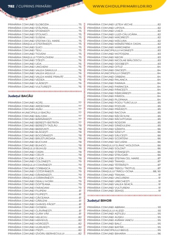 782 / CUPRINS PRIM%u0102RII WWW.GHIDULPRIMARIILOR.ROPRIM%u00c3RIA COMUNEI SLOBOZIA......................................................75PRIM%u00c3RIA COMUNEI ST%u00c2LPENI........................................................75PRIM%u00c3RIA COMUNEI STOENE%u0218TI....................................................75PRIM%u00c3RIA COMUNEI STOLNICI.........................................................75PRIM%u00c3RIA COMUNEI SUSENI.............................................................75PRIM%u00c3RIA COMUNEI %u0218TEFAN CEL MARE..................................75PRIM%u00c3RIA ORA%u0218ULUI %u0218TEF%u00c3NE%u0218TI.................................................75PRIM%u00c3RIA COMUNEI %u0218UICI..................................................................75PRIM%u00c3RIA COMUNEI TEIU....................................................................75PRIM%u00c3RIA COMUNEI TIGVENI ...........................................................75PRIM%u00c3RIA ORA%u0218ULUI TOPOLOVENI .............................................75PRIM%u00c3RIA COMUNEI %u021aI%u021aE%u0218TI..............................................................76PRIM%u00c3RIA COMUNEI UDA....................................................................76PRIM%u00c3RIA COMUNEI UNGHENI .......................................................76PRIM%u00c3RIA COMUNEI VALEA DANULUI.......................................76PRIM%u00c3RIA COMUNEI VALEA IA%u0218ULUI ..........................................76PRIM%u00c3RIA COMUNEI VALEA MARE PRAV%u00c3%u021a...........................76PRIM%u00c3RIA COMUNEI VEDEA..............................................................76PRIM%u00c3RIA COMUNEI VL%u00c3DE%u0218TI .......................................................76PRIM%u00c3RIA COMUNEI VULTURE%u0218TI .................................................76Jude%u021bul BAC%u00c3UPRIM%u00c3RIA COMUNEI AG%u00c3%u0218..................................................................77PRIM%u00c3RIA COMUNEI ARDEOANI ....................................................77PRIM%u00c3RIA COMUNEI AS%u00c3U..................................................................77PRIM%u00c3RIA MUNICIPIULUI BAC%u00c3U...................................................77PRIM%u00c3RIA COMUNEI BALCANI .........................................................77PRIM%u00c3RIA COMUNEI B%u00c2RS%u00c3NE%u0218TI................................................77PRIM%u00c3RIA COMUNEI BERE%u0218TI-BISTRI%u021aA ...................................77PRIM%u00c3RIA COMUNEI BERE%u0218TI-TAZL%u00c3U......................................78PRIM%u00c3RIA COMUNEI BERZUN%u021aI......................................................78PRIM%u00c3RIA COMUNEI BL%u00c3GE%u0218TI .......................................................78PRIM%u00c3RIA COMUNEI BOGD%u00c3NE%u0218TI ..............................................78PRIM%u00c3RIA COMUNEI BRUSTUROASA..........................................78PRIM%u00c3RIA COMUNEI BUCIUMI.........................................................78PRIM%u00c3RIA COMUNEI BUHOCI...........................................................78PRIM%u00c3RIA ORA%u0218ULUI BUHU%u0218I ..........................................................78PRIM%u00c3RIA COMUNEI CA%u0218IN................................................................78PRIM%u00c3RIA COMUNEI C%u00c3IU%u021aI...............................................................78PRIM%u00c3RIA COMUNEI CLEJA................................................................78PRIM%u00c3RIA COMUNEI COLONE%u0218TI...................................................79PRIM%u00c3RIA ORA%u0218ULUI COM%u00c3NE%u0218TI ................................................79PRIM%u00c3RIA COMUNEI CORBASCA....................................................79PRIM%u00c3RIA COMUNEI CO%u021aOF%u00c3NE%u0218TI.............................................79PRIM%u00c3RIA COMUNEI D%u00c3MIENE%u0218TI.................................................79PRIM%u00c3RIA ORA%u0218ULUI D%u00c3RM%u00c3NE%u0218TI.............................................79PRIM%u00c3RIA COMUNEI DEALU MORII..............................................79PRIM%u00c3RIA COMUNEI DOFTEANA....................................................79PRIM%u00c3RIA COMUNEI FARAOANI .....................................................79PRIM%u00c3RIA COMUNEI FILIPENI ...........................................................81PRIM%u00c3RIA COMUNEI FILIPE%u0218TI..........................................................81PRIM%u00c3RIA COMUNEI G%u00c3ICEANA ......................................................81PRIM%u00c3RIA COMUNEI G%u00c2RLENI..........................................................81PRIM%u00c3RIA COMUNEI GHIME%u0218-F%u00c3GET...........................................81PRIM%u00c3RIA COMUNEI GIOSENI............................................................81PRIM%u00c3RIA COMUNEI GL%u00c3V%u00c3NE%u0218TI..................................................81PRIM%u00c3RIA COMUNEI GURA V%u00c3II.......................................................81PRIM%u00c3RIA COMUNEI HELEGIU.........................................................82PRIM%u00c3RIA COMUNEI HEMEIU%u0218........................................................82PRIM%u00c3RIA COMUNEI HORGE%u0218TI......................................................82PRIM%u00c3RIA COMUNEI HURUIE%u0218TI.....................................................82PRIM%u00c3RIA COMUNEI ITE%u0218TI.................................................................82PRIM%u00c3RIA COMUNEI IZVORU BERHECIULUI .........................82PRIM%u00c3RIA COMUNEI LETEA VECHE..............................................82PRIM%u00c3RIA COMUNEI LIPOVA.............................................................82PRIM%u00c3RIA COMUNEI LIVEZI................................................................82PRIM%u00c3RIA COMUNEI LUIZI-C%u00c3LUG%u00c3RA......................................82PRIM%u00c3RI