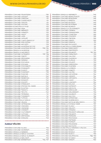 WWW.GHIDULPRIMARIILOR.RO CUPRINS PRIM%u0102RII / 805PRIM%u00c3RIA COMUNEI FRUNTI%u0218ENI ..............................................730PRIM%u00c3RIA COMUNEI G%u00c3GE%u0218TI.......................................................730PRIM%u00c3RIA COMUNEI G%u00c2RCENI.......................................................731PRIM%u00c3RIA COMUNEI GHERGHE%u0218TI.............................................731PRIM%u00c3RIA COMUNEI GRIVI%u021aA..........................................................731PRIM%u00c3RIA COMUNEI HOCENI ........................................................732PRIM%u00c3RIA MUNICIPIULUI HU%u0218I.....................................................732PRIM%u00c3RIA COMUNEI IANA................................................................732PRIM%u00c3RIA COMUNEI IB%u00c3NE%u0218TI......................................................732PRIM%u00c3RIA COMUNEI IV%u00c3NE%u0218TI......................................................732PRIM%u00c3RIA COMUNEI IVE%u0218TI.............................................................732PRIM%u00c3RIA COMUNEI LAZA ...............................................................732PRIM%u00c3RIA COMUNEI LIPOV%u00c3%u021a .......................................................732PRIM%u00c3RIA COMUNEI LUNCA BANULUI ................................... 733PRIM%u00c3RIA COMUNEI M%u00c3LU%u0218TENI................................................ 733PRIM%u00c3RIA COMUNEI MICLE%u0218TI...................................................... 733PRIM%u00c3RIA COMUNEI MUNTENII DE JOS ................................ 733PRIM%u00c3RIA COMUNEI MUNTENII DE SUS......................733, 734PRIM%u00c3RIA ORA%u0218ULUI MURGENI...................................................737PRIM%u00c3RIA ORA%u0218ULUI NEGRE%u0218TI ..................................................737PRIM%u00c3RIA COMUNEI OLTENE%u0218TI........................................737, 738PRIM%u00c3RIA COMUNEI O%u0218E%u0218TI...........................................................737PRIM%u00c3RIA COMUNEI P%u00c3DURENI..................................................737PRIM%u00c3RIA COMUNEI PERIENI........................................................737PRIM%u00c3RIA COMUNEI POCHIDIA...................................................740PRIM%u00c3RIA COMUNEI POGANA ......................................................737PRIM%u00c3RIA COMUNEI POGONE%u0218TI...............................................740PRIM%u00c3RIA COMUNEI POIENE%u0218TI..................................................740PRIM%u00c3RIA COMUNEI PUIE%u0218TI.........................................................740PRIM%u00c3RIA COMUNEI PUNGE%u0218TI...................................................739PRIM%u00c3RIA COMUNEI PU%u0218CA%u0218I.......................................................740PRIM%u00c3RIA COMUNEI RAFAILA .......................................................740PRIM%u00c3RIA COMUNEI REBRICEA...................................................740PRIM%u00c3RIA COMUNEI RO%u0218IE%u0218TI......................................................740PRIM%u00c3RIA COMUNEI SOLE%u0218TI........................................................740PRIM%u00c3RIA COMUNEI ST%u00c3NILE%u0218TI.................................................740PRIM%u00c3RIA COMUNEI %u0218TEFAN CEL MARE...............................740PRIM%u00c3RIA COMUNEI %u0218ULETEA......................................................740PRIM%u00c3RIA COMUNEI TANACU........................................................740PRIM%u00c3RIA COMUNEI T%u00c3CUTA.........................................................740PRIM%u00c3RIA COMUNEI T%u00c3T%u00c3R%u00c3NI.....................................................741PRIM%u00c3RIA COMUNEI TODIRE%u0218TI ...................................................741PRIM%u00c3RIA COMUNEI TUTOVA..........................................................741PRIM%u00c3RIA MUNICIPIULUI VASLUI................................................743PRIM%u00c3RIA COMUNEI V%u00c3LENI..........................................................743PRIM%u00c3RIA COMUNEI VETRI%u0218OAIA...............................................743PRIM%u00c3RIA COMUNEI VII%u0218OARA.....................................................743PRIM%u00c3RIA COMUNEI VINDEREI ....................................................743PRIM%u00c3RIA COMUNEI VOINE%u0218TI .....................................................743PRIM%u00c3RIA COMUNEI VULTURE%u0218TI ..............................................743PRIM%u00c3RIA COMUNEI VUTCANI ......................................................743PRIM%u00c3RIA COMUNEI Z%u00c3PODENI..................................................743PRIM%u00c3RIA COMUNEI ZORLENI ......................................................743Jude%u021bul V%u00c2LCEAPRIM%u00c3RIA COMUNEI ALUNU ..........................................................745PRIM%u00c3RIA COMUNEI AM%u00c3R%u00c3%u0218TI...................................................745PRIM%u00c3RIA ORA%u0218ULUI B%u00c3BENI........................................................745PRIM%u00c3RIA ORA%u0218ULUI B%u00c3ILE GOVORA......................................745PRIM%u00c3RIA ORA%u0218ULUI B%u00c3ILE OL%u00c3NE%u0218TI...................................745PRIM%u00c3RIA ORA%u0218ULUI B%u00c3LCE%u0218TI ...................................................745PRIM%u00c3RIA COMUNEI B%u00c3RB%u00c3TE%u0218TI................................... 746, 747PRIM%u00c3RIA ORA%u0218ULUI BERBE%u0218TI...................................................746PRIM%u00c3RIA COMUNEI BERISL%u00c3VE%u0218TI..........................................746PRIM%u00c3RIA COMUNEI BOI%u0218OARA..................................................746PRIM%u00c3RIA ORA%u0218ULUI BREZOI........................................................746PRIM%u00c3RIA COMUNEI BUDE%u0218TI.......................................................746PRIM%u00c3RIA COMUNEI BUJORENI ............................
